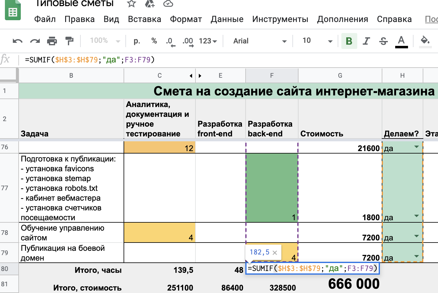 Для разбивания вашей сметы на этапы используйте колонку "этап" (справа), выставляйте там цифрой номер этапа и в отдельном месте считайте суммы по этапам.